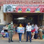 Wonogiri – Pasar Krisak, Kecamatan Selogiri tempat dimana anggota gabungan TNI-Polri dan tenaga kesehatan dari Puskesmas Selogiri menggelar operasi penegakan disiplin protocol