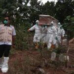 Bandar Lampung- Sejumlah personel Kodim 0410/KBL yang tergabung dalam Tim Evakuasi Satuan Tugas (Satgas) Covid-19 Kota Bandar Lampung melaksanakan prosesi pemakaman terhadap