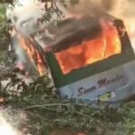 Tabrakan, Bus Sinar Mandiri Terbakar di Jalan Raya Babat-Lamongan