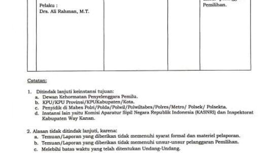 WAY KANAN, FS – Badan Pengawas Pemilihan Umum (Bawaslu) Kabupaten Way kanan, tidak dapat melanjutkan pemeriksaan atas temuan adanya dugaan status ganda