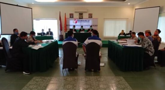 KALIANDA, FS- Sidang sengketa pilkada antar pihak pemohon Hipni – Melin H Wijaya (Himel) dan termohon KPU Lampung Selatan, di Negeri Baru