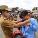 Bandarlampung-Pelaksana Harian Bupati Pesisir Barat N Lingga Kusuma membagikan masker kepada masyarakat yang melintas di jalan protokol kabupaten ini, tujuannya agar masyarakat