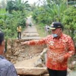 Bandarlampung- Bupati Lampung Selatan Nanang Ermanto bersama rombongan meninjau jembatan Sungai Batu Ampar di wilayah Desa Mekar Jaya Kecamatan Merbau Mataram. “Saya ingin jembatan ini