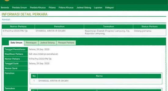 BANDAR LAMPUNG, FS – Syamsul Arifin, yang buron selama 7 tahun oleh Polda Lampung, resmi mengajukan permohonan praperadilan atas status tersangka yang