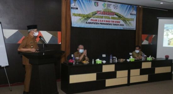 Bandarlampung- Bupati Pringsewu, Sujadi menghadiri acara workshop tentang Sanitasi Total Berbasis Masyarakat (STBM) Se-Kabupaten Pringsew yang diikuti oleh 30 orang anggota. “Sanitasi total