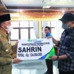 Lambar, etalaseinfo.com (SMSI) – Bupati Lampung Barat (Lambar) Hi. Parosil Mabsus didampingi Wakil Bupati Drs. Mad Hasnurin menyerahkan santunan kepada korban kecelakaan