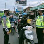 Polres Pringsewu Kampanye Tertib Berlalu Lintas Dan Edukasi Prokes Bagi Masyarakat