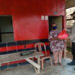 Way Kanan, etalaseinfo (SMSI) – Bhabinkamtibmas Polsek Baradatu salurkan bantuan paket sembako kepada warga kurang mampu yang terdampak Covid-19 di Kelurahan Tiuh