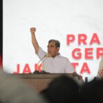 JAKARTA— Sekjen Partai Gerindra Ahmad Muzani menghadiri konsolidasi akbar kader Gerindra wilayah Jakarta Pusat di Lapangan Banteng, Minggu (16/7). Turut hadir anggota