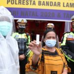 BANDAR LAMPUNG: Jajaran Satuan Lalu Lintas (Satlantas) Polresta Bandar Lampung melakukan rapid tes antigen massal, bagi para wisatawan luar daerah yang hendak