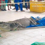 Saibumi.com – Seekor buaya tangkapan nelayan dari Tempat Pelelangan Ikan Kuala Penet di Desa Margasari, Kecamatan Labuhan Maringgai, Lampung Timur dievakuasi petugas