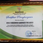 Way Kanan, etalaseinfo.com (SMSI) – Ata kepedulian terhadap pembayaran zakat infak dan sodaqoh, Dinas Perkebunan Kabupaten Way Kanan menerima Penghargaan Dari BAZNAS